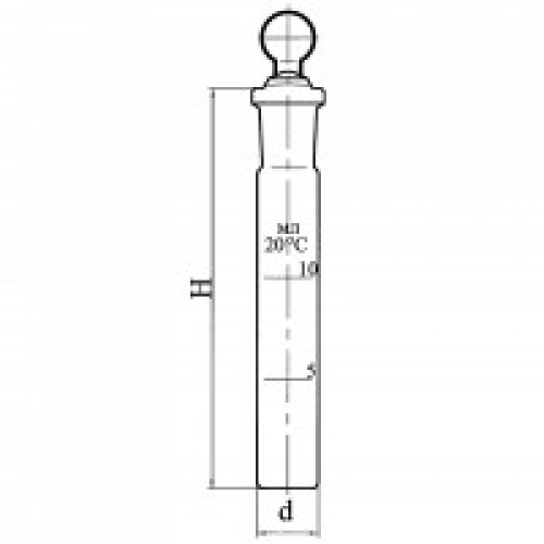 Стеклянная пробирка колориметрическая, ГОСТ 25336-82. Вместимость 10 мл. Комплект с пробкой. Горловина и пробка притертые, со шлифом 14/23. На стенки сосуда нанесена метка номинального объема. Сосуд цилиндрический, с круглым дном. Может устанавливаться в специальных подставках или укрепляться в штативах.