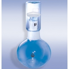 Склянка имеет сферическую форму. Закрывается притертой пробкой и колпачком. Изготовлена из химически стойкого стекла группы ХС.