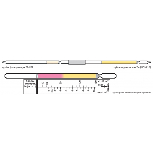 Описание: ТИ-[HCl-0,15] представляет собой комплект, состоящий из двух трубок – трубки индикаторной ТИ-[HCl-0,15] и трубки фильтрующей ТФ-НCl.