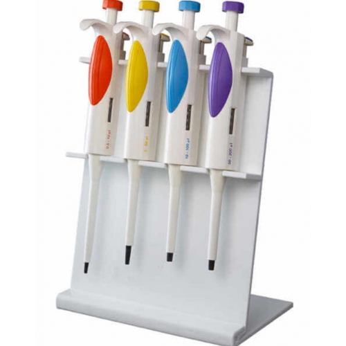 Пластиковые вертикальные стойки-держатели на 4 места, применяются для хранения дозаторов переменного и постоянного объёма в вертикальном положении, когда дозатор не используется.