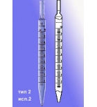 Пипетки с делениями типа 2 (полный слив) выпускаются на объем от 1 до 25 мл. Верхняя отметка шкалы соответствует номинальной вместимости, отградуированы на слив от любой отметки до сливного кончика. Цвет шкалы -темный. По ГОСТ 29227-91 «Посуда лабораторная стеклянная. Пипетки градуирова..